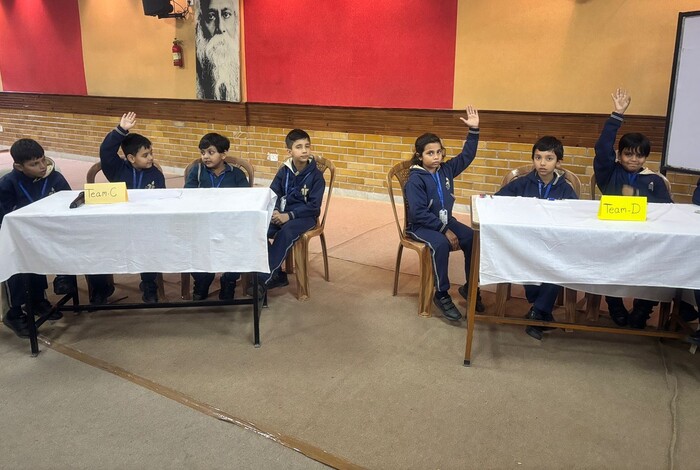 The quiz featured five engaging rounds covering Mathematics, English, General Awareness, GK, and Sports. Students participated with great enthusiasm, showcasing excellent teamwork and presence of mind. Their eagerness to respond, cheer for their teams, and solve questions with confidence made the event lively and memorable.