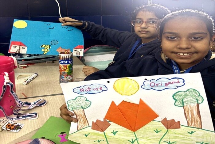 2 D Origami, the intra-section competition was held for the little enthusiasts of class IV. The objective behind the competition was to inculcate closeness to nature, as they created 2D winter landscapes with origami sheets.